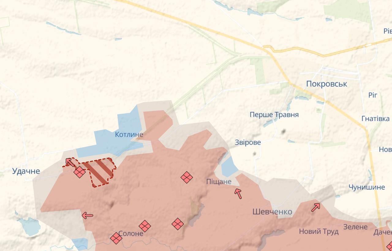 В частности, в районе Удачного, где ранее контратаковали украинские войска, но теперь их позиции снова сократились.