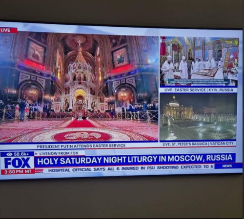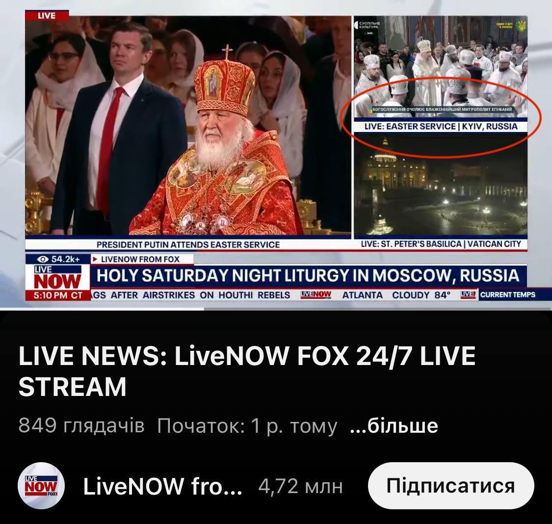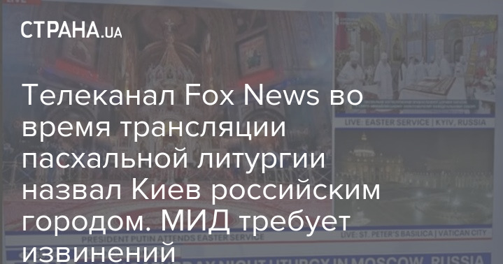 Американский телеканал Fox News во время трансляции пасхального богослужения из разных городов мира допустил ошибку, обозначив эфир из Украины, как "Киев, Россия".