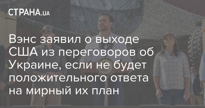 Вэнс заявил о выходе США из переговоров об Украине, если не будет положительного ответа на мирный их план