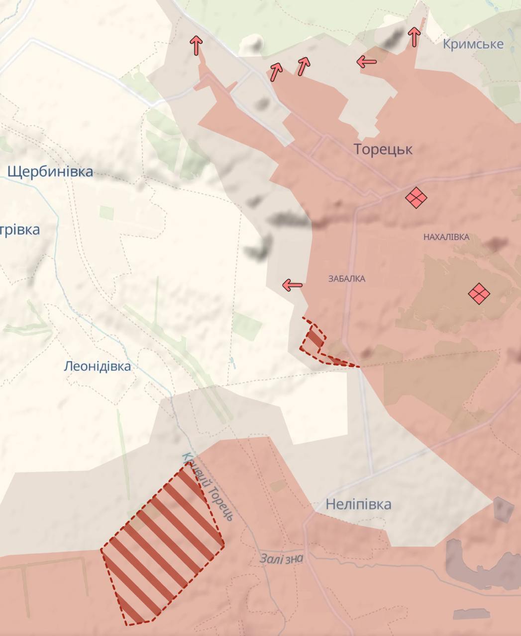 16:59 Армия РФ продвинулись в Торецке и южнее, около Нелиповки, сообщает Deep State.