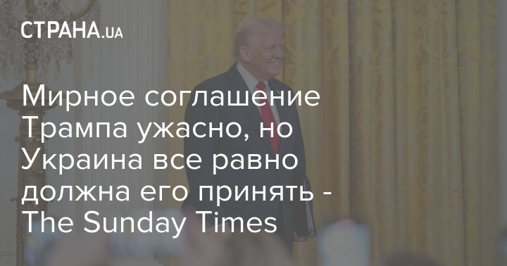 Мирное соглашение президента США Дональда Трампа ужасно, но Украина все равно должна его принять. Об этом пишет обозреватель Марк Галеотти для издания The Sunday Times.