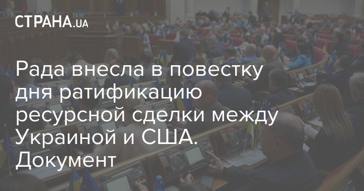 Рада внесла в повестку дня ратификацию ресурсной сделки между Украиной и США. Документ