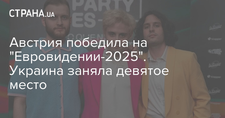 На финале "Евровидения-2025" в Базеле выиграл представитель Австрии JJ з треком "Wasted Love". Он набрал 436 баллов по результатам голосования зрителей и жюри.