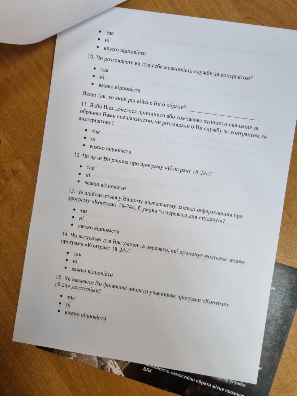 В некоторых украинских вузах студентов обязали заполнить анонимные анкеты, в которых спрашивают об отношении к военной службе, молодежному контракту и желании служить.