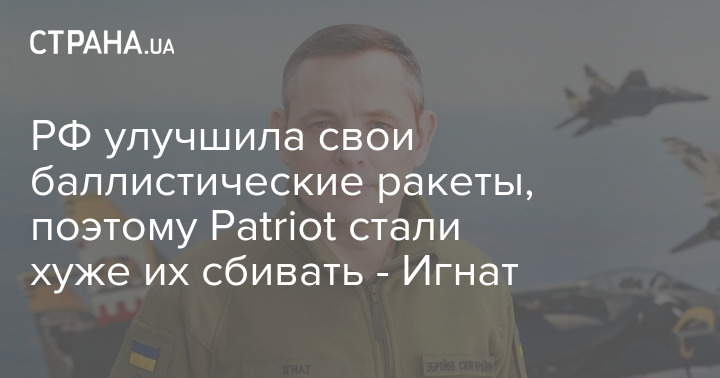Россия улучшила свои баллистические ракеты, поэтому системы Patriot стали хуже их сбивать. Об этом заявил начальник управления коммуникаций Воздушных сил ВСУ Юрий Игнат, комментируя сегодняшний ночной обстрел Киева.