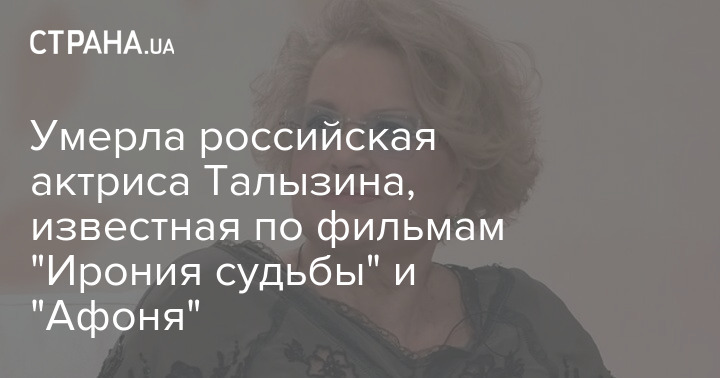 Умерла российская актриса Талызина, известная по фильмам "Ирония судьбы" и "Афоня"