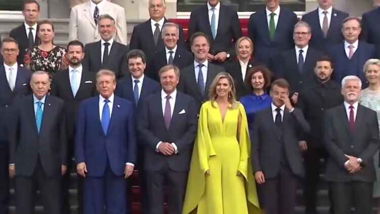 В ролике можно заметить, что форма одежды стоящего рядом с президентом Франции Эмманюэлем Макроном и главой Еврокомиссии Урсулой фон дер Ляйен Владимира Зеленского сильно отличается от костюмов лидеров государств, приехавших в Гаагу.