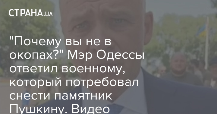 Мэр Одессы Геннадий Труханов вступил в спор с мужчиной в военной форме, который пришел требовать сноса памятника известному русскому литературному деятелю XIX века Александру Пушкину.