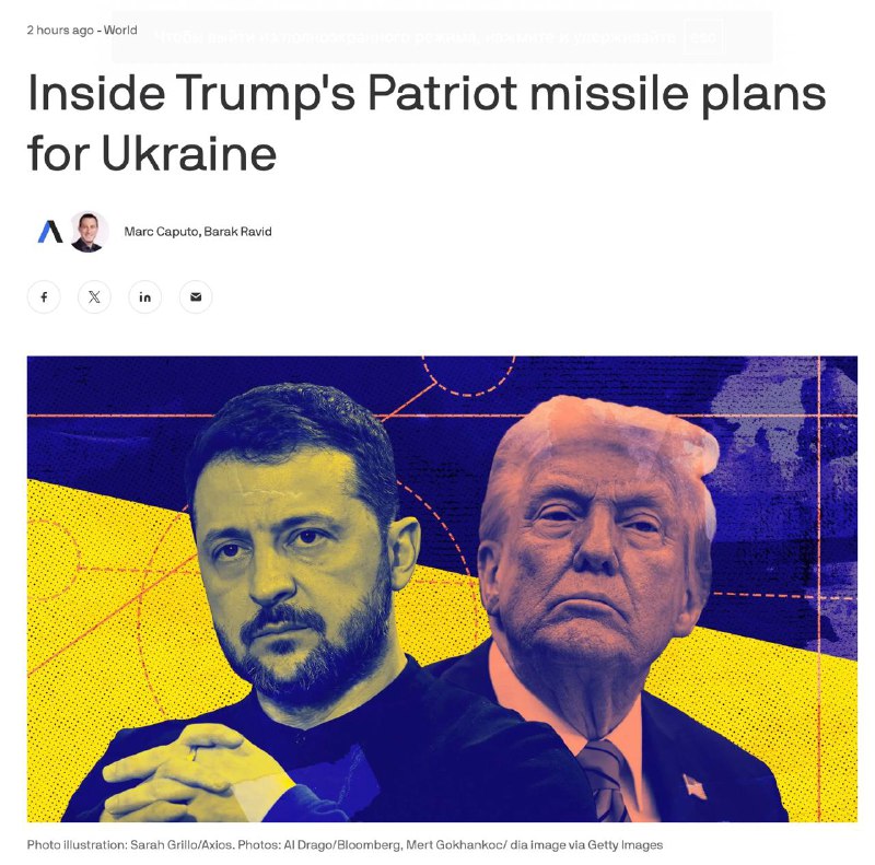 Президент США Дональд Трамп заверил Владимира Зеленского, что Вашингтон немедленно отправит в Украину 10 ракет-перехватчиков для ЗРК Patriot. Это меньше, чем планировалось изначально.