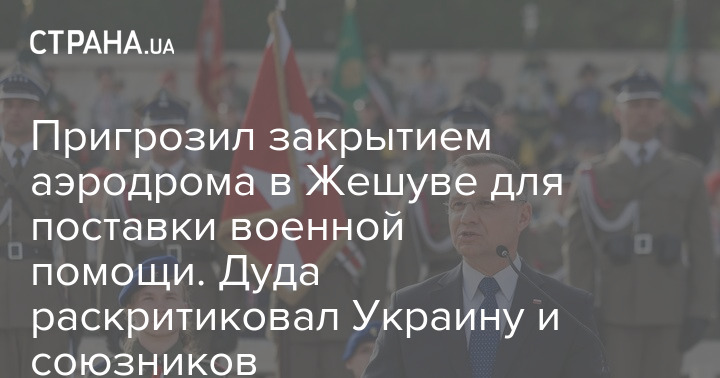 Пригрозил закрытием аэродрома в Жешуве для поставки военной помощи. Дуда раскритиковал Украину и союзников