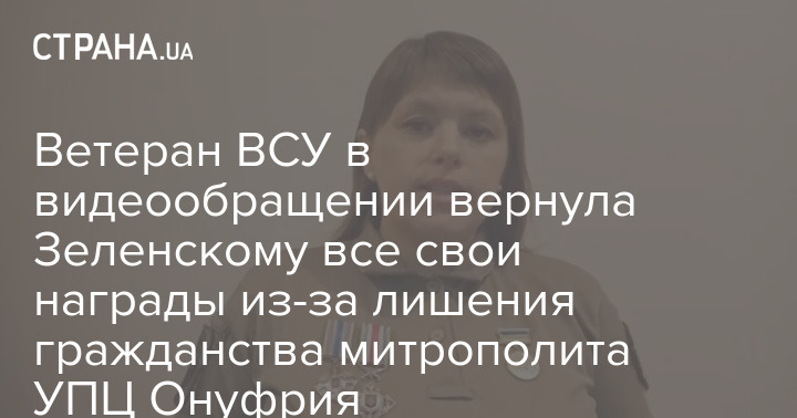 Боевой медик и ветеран ВСУ Лариса Бродецкая возвращает президенту Украины Владимиру Зеленскому все награды и ордена, полученные за время его правления, из-за указа о лишении гражданства митрополита УПЦ Онуфрия.