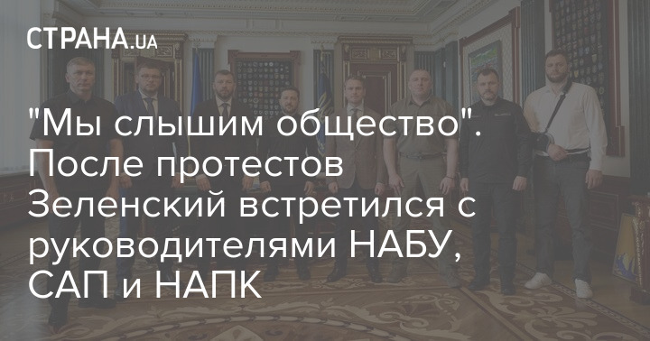 Президент Украины Владимир Зеленский после вчерашних протестов встретился с руководителями антикоррупционных структур - НАБУ, САП и НАПК. При этом на встрече также присутствовали руководители СБУ, ГБР, МВД и Генпрокуратуры.