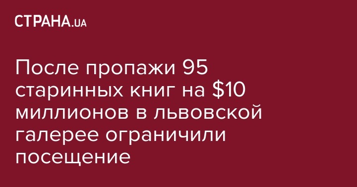 По факту пропажи 95 книг из Львовской галереи искусств полиция открыла уголовное производство, а посещение самого музея было ограничено руководством. Об этом сообщает пресс-служба Нацполиции во Львовской области.