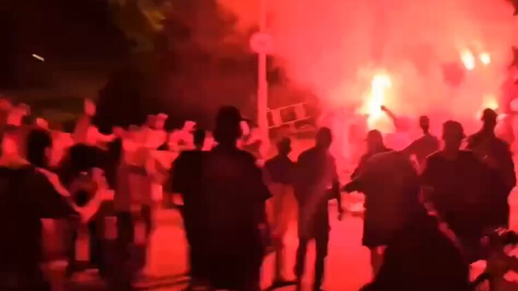 С наступлением ночи протестующие продолжили митинг в поддержку антикоррупционных организаций при свете факелов.