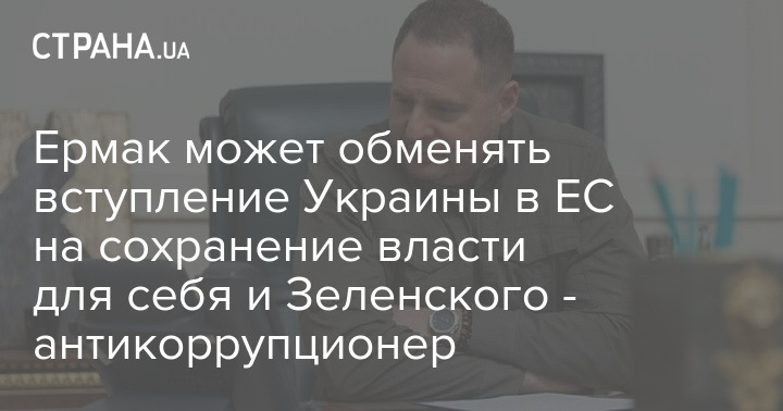 Руководитель Офиса президента Андрей Ермак может договориться с Россией и отказаться от курса вступления Украины в ЕС, чтобы вместе с  Владимиром Зеленским удержаться у власти.