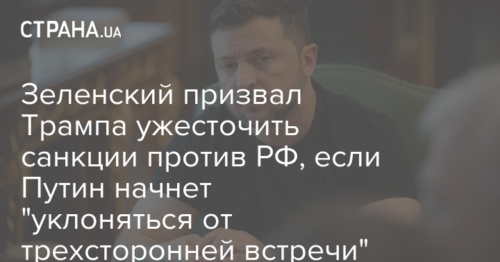 Президент Украины Владимир Зеленский призвал американского главу Дональда Трампа ужесточить санкции против России, если Владимир Путин начнет "уклоняться от трехсторонней встречи".