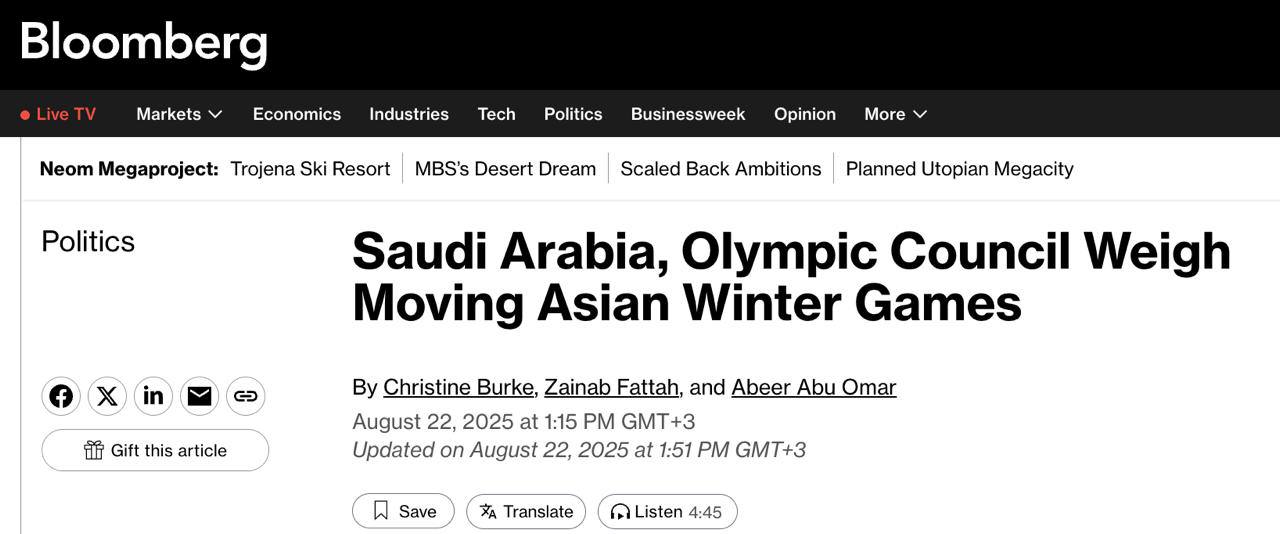 Саудовская Аравия не может создать снег и просит Китай провести Азиатские зимние игры 2029 года - Bloomberg
