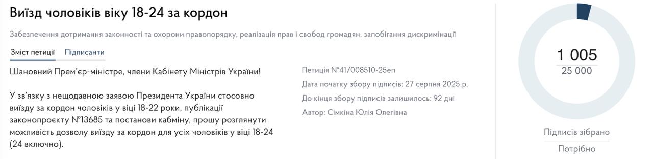 17.54 На сайте правительства зарегистрировали петицию с призывом разрешить выезд за границу также мужчинам 23-24 лет и 50-55 лет.