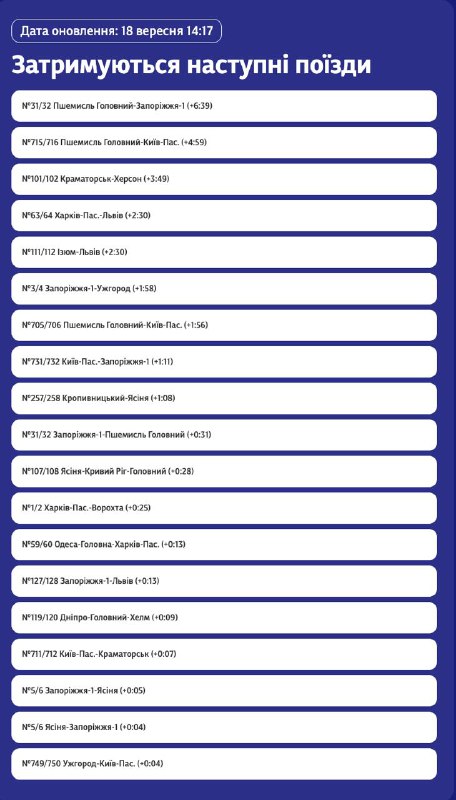 14:40 В Украине вторые сутки наблюдаются масштабные задержки поездов после вчерашних ударов по железнодорожной инфраструктуре.
