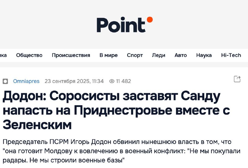 "Если PAS (партия "Действие и солидарность" - Ред.) останется у власти (по итогам намеченных на ближайшее воскресенье выборов - Ред.), соросята заставят Санду напасть на Приднестровье вместе с Зеленским и открыть там второй фронт - в поддержку Украины и против России", - заявил Додон и добавил, что "подобный сценарий второго фронта уже пробовали реализовать в Грузии, но он провалился, а теперь очередь Молдовы", сказал политик.