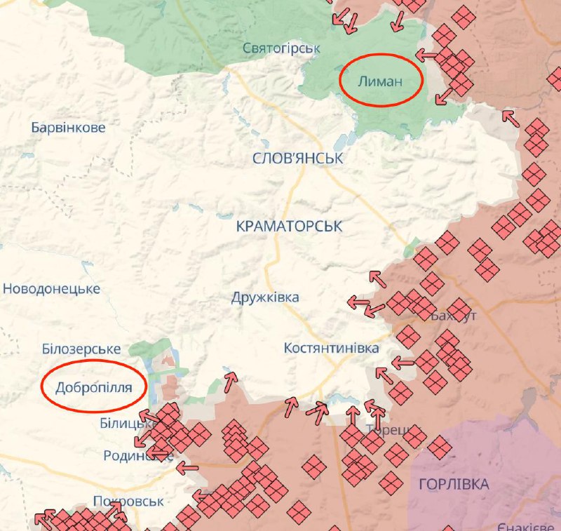 "С тем огромным ресурсом, который россияне имеют, они выбирают стратегические направления наступления. И сейчас то, что я вижу, они выбрали два основных направления – это Добропольское, и я считаю, что они решили по-серьезному наступать на Лиманское направление, чтобы окружить Константиновку, Дружковку, Краматорск и Славянск. И выглядит так, что огневым контролем они почти окружили их. То есть, конечно, они не захватили территорию, но мы знаем, что трасса Изюм – Славянск уже не проездная. И они постепенно все это закрывают", - заявил Кротевич.