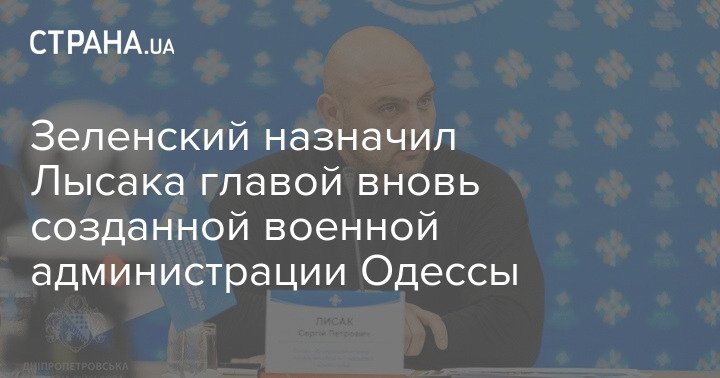Владимир Зеленский назначил председателя Днепропетровской областной военной администрации Сергея Лысака главой только что созданной военной администрации Одессы.