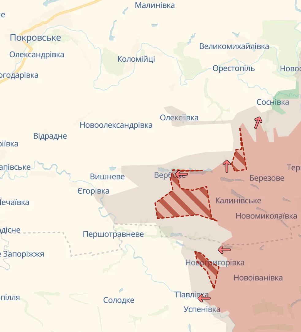 Южнее российские войска продвинулись около Новогригоровки Запорожской области, сообщает Deep State.
