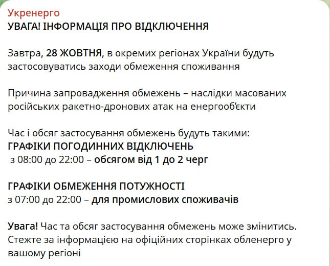 10.12 В Киеве отменили экстренные отключения света и ввели графики, сообщает "Укрэнерго".