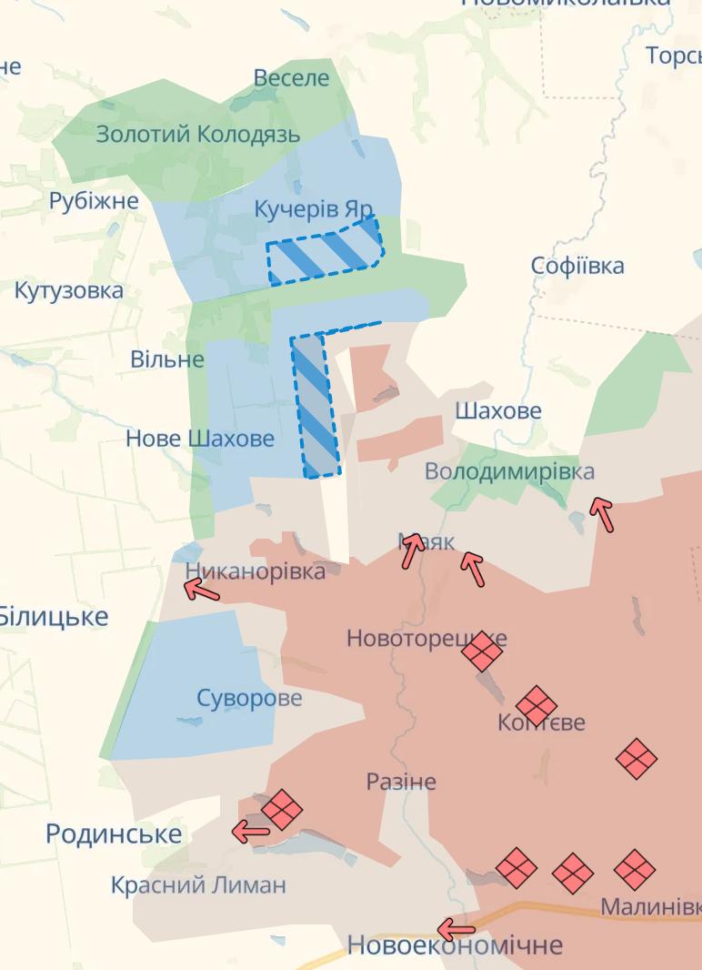 Во-вторых, "серая зона" выросла к северу от Покровска, в районе Красного Лимана и Родинского. Ранее украинские военные и обозреватели писали о продвижении россиян в этом районе.
