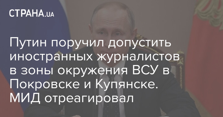 Президент России Владимир Путин "приказал обеспечить беспрепятственный проезд иностранных журналистов, включая представителей украинских СМИ, в районы блокирования ВСУ" в Покровске, Мирнограде и Купянске.