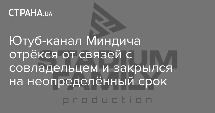 Развлекательный ютуб-канал Stadium Family, совладельцем которого был бизнесмен Тимур Миндич, отрёкся от него и объявил о закрытии на неопределённый срок.