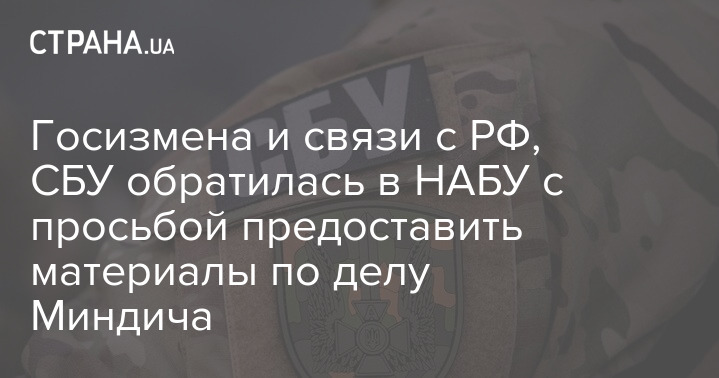 Госизмена и связи с РФ, СБУ обратилась в НАБУ с просьбой предоставить материалы по делу Миндича