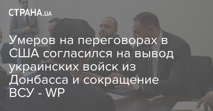 Секретарь СНБО Рустем Умеров на переговорах в США согласился на вывод украинских войск из Донбасса и сокращение ВСУ до 600 тысяч человек. Позже это легло в основу плана президента США Дональда Трампа по Украине.