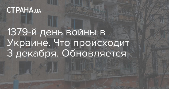 В среду, 3 декабря, в Украине идет 1379-й день войны с Россией.