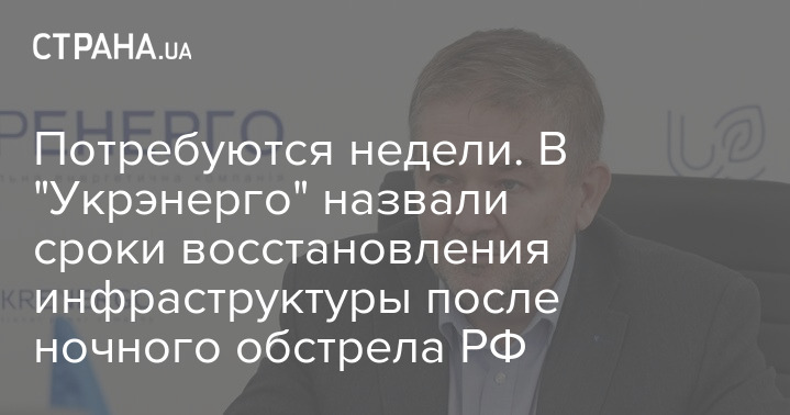 Потребуются недели. В "Укрэнерго" назвали сроки восстановления инфраструктуры после ночного обстрела РФ