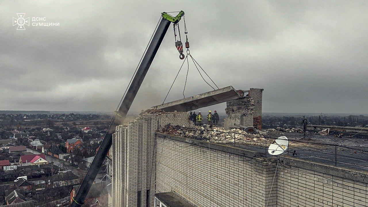 14.22 Последствия вчерашнего прилёта дрона в Ахтырке.