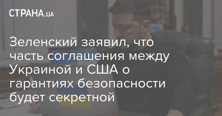 Зеленский заявил, что часть соглашения между Украиной и США о гарантиях безопасности будет секретной