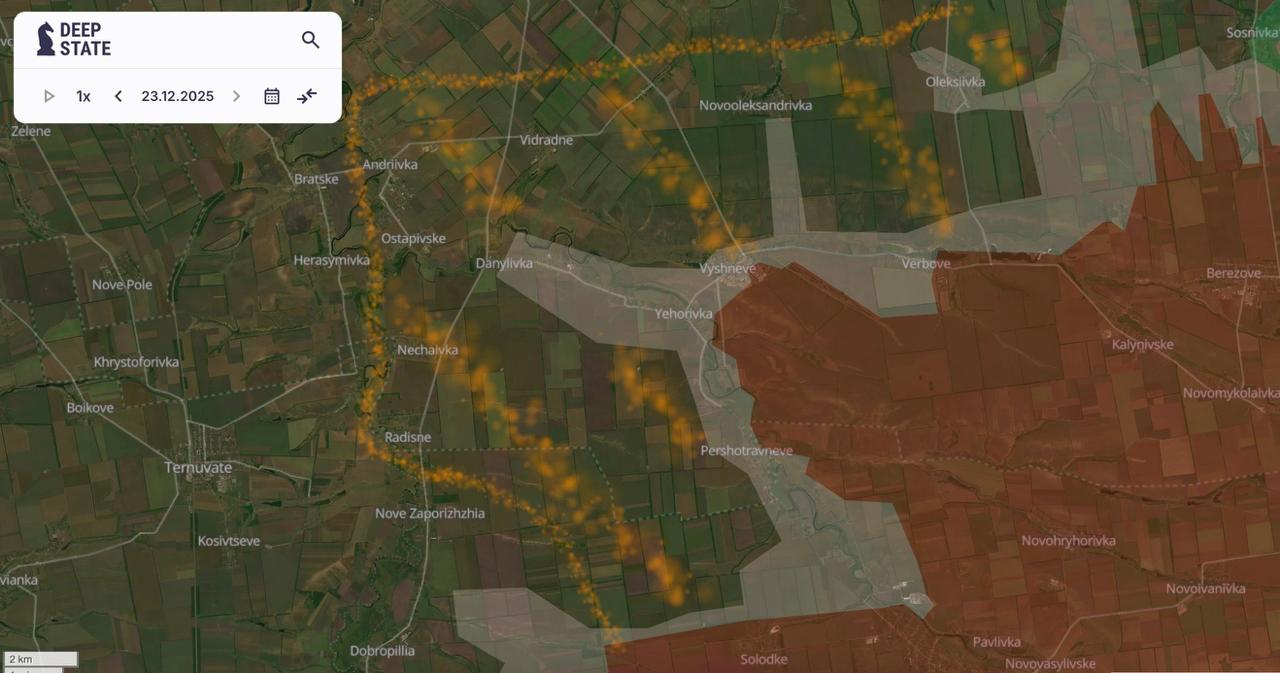 Например, Радостное Днепропетровской области по данным Deep State находится в 8 км от линии фронта, но россияне туда зашли еще 21 ноября.