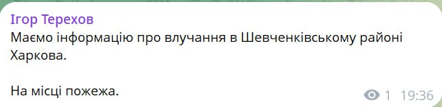 10.51 О прилетах в пригороде Харькова сообщает мэр Терехов.