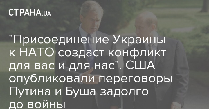 "Присоединение Украины к НАТО создаст конфликт для вас и для нас". США опубликовали переговоры Путина и Буша задолго до войны