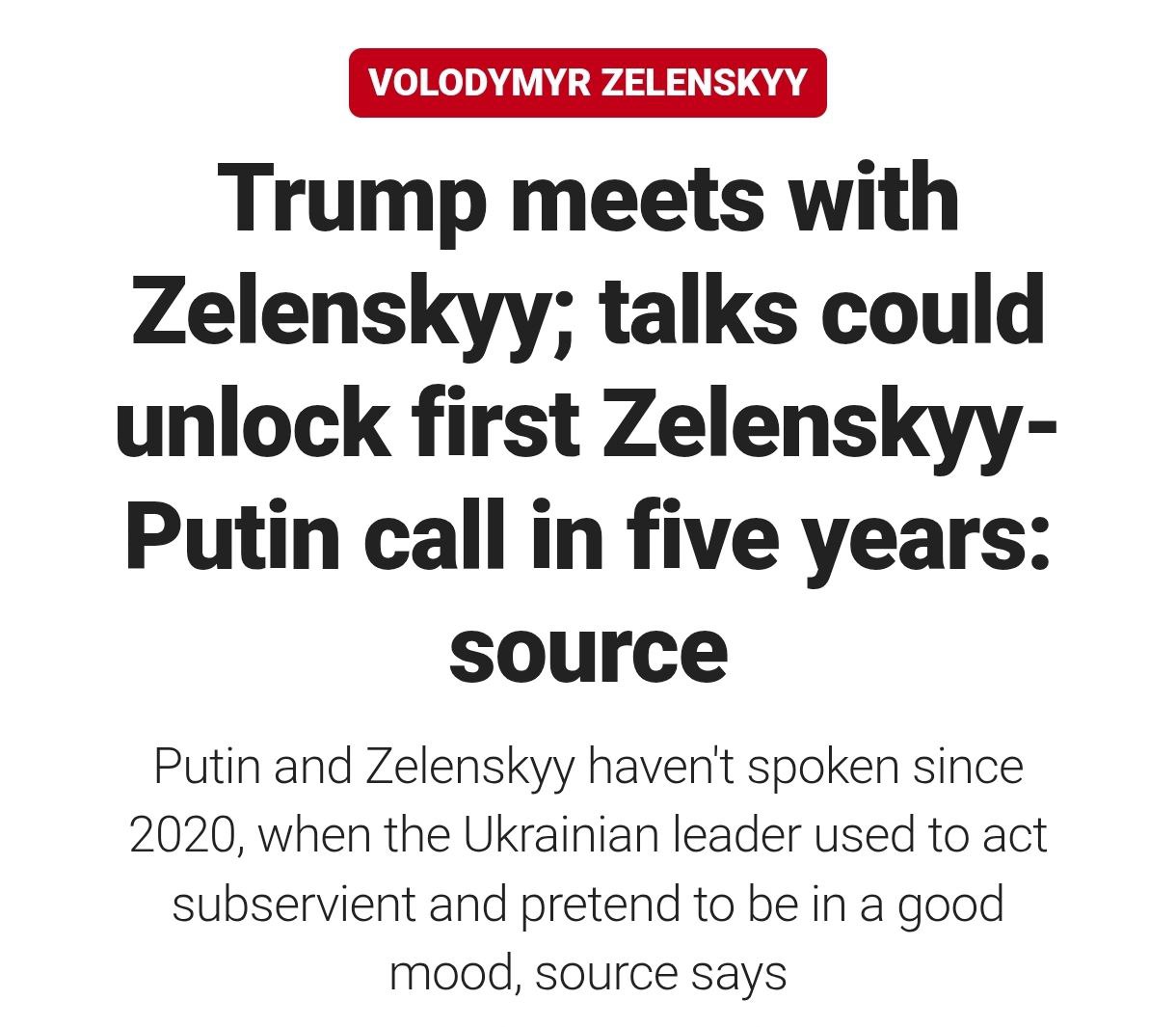 "Зеленский обычно очень нервничает перед подобными разговорами с президентом Трампом. Он долго концентрируется и изучает записи, которые готовят для него Департамент международной политики и Министерство иностранных дел", - рассказал собеседник Fox News.