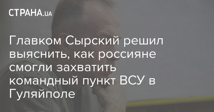Главком ВСУ Александр Сырский сообщил, что военная служба правопорядка проводит расследование инцидента, во время которого российские солдаты заняли командный пункт ВСУ в Гуляйполе Запорожской области.