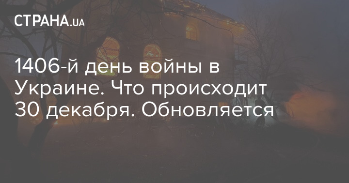 Во вторник, 30 декабря, в Украине идёт 1406-й день войны с Россией.