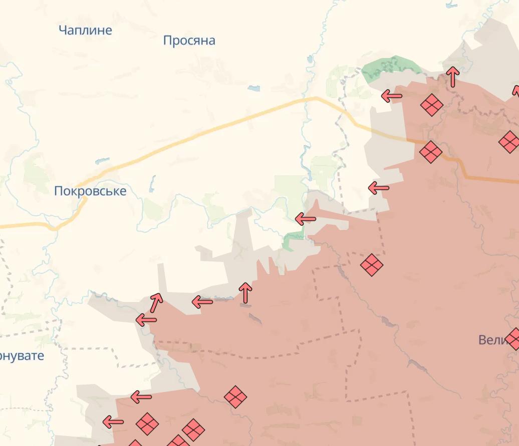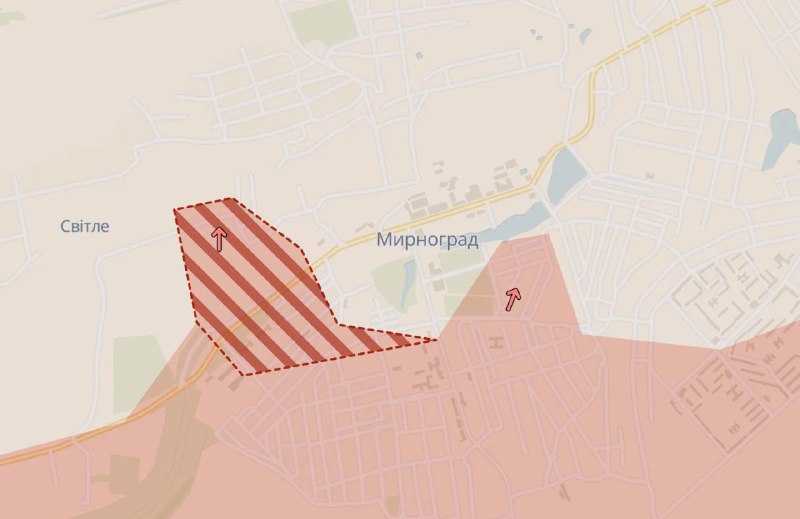 12.34 Армия РФ продвинулась на западе Мирнограда и южнее Северска, сообщает Deep State.