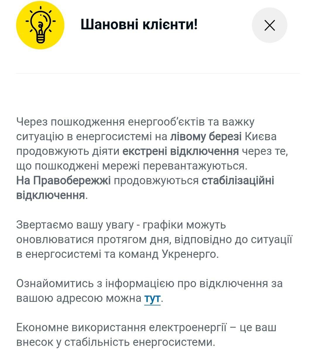 10.08 На левом берегу Киева четвертые сутки продолжаются аварийные отключения света. На правом берегу действуют графики.