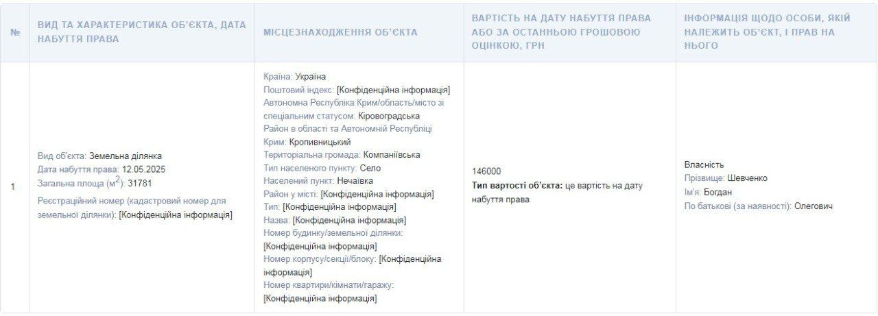 Также весной он стал владельцем земельного участка стоимостью 146 тыс. грн.