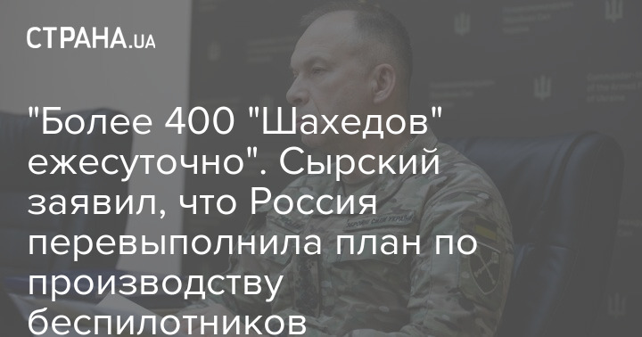 "Более 400 "Шахедов" ежесуточно". Сырский заявил, что Россия перевыполнила план по производству беспилотников