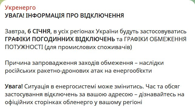 18.55 Отключения света завтра будут во всех регионах Украины, заявляет "Укрэнерго".