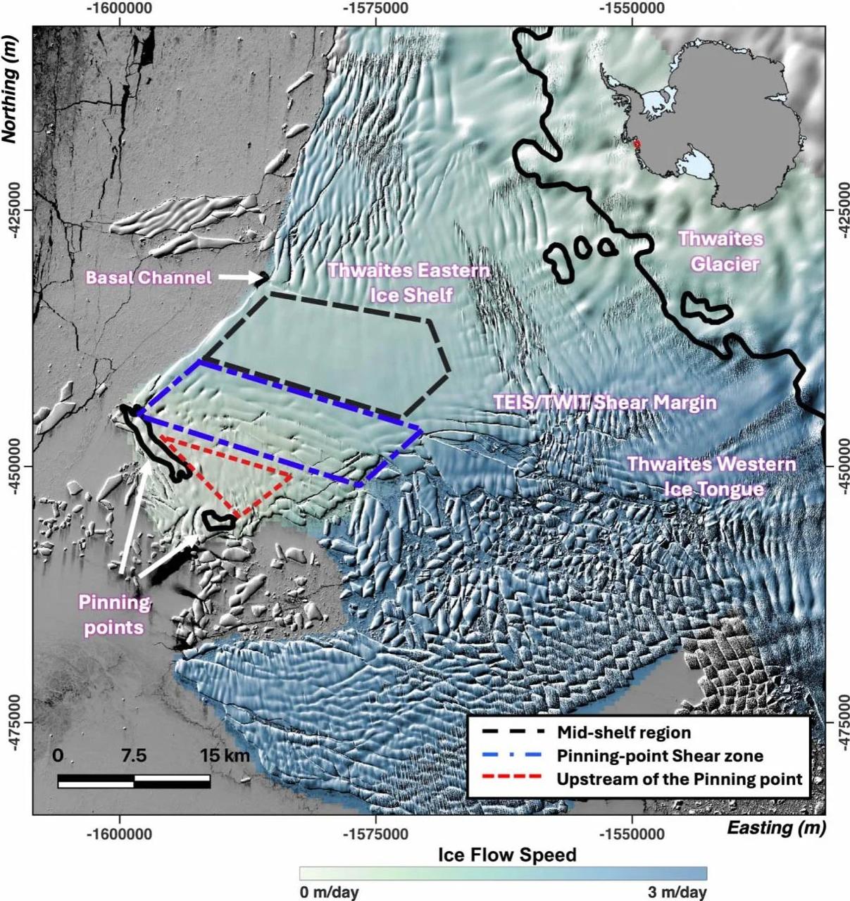 В Западной Антарктиде интенсивно ускоряется разрушения ледника Туэйтса. Речь идет о восточной части шельфового ледника, которая до недавнего времени играла роль своеобразной "подпорки", сдерживая движение льда в океан.