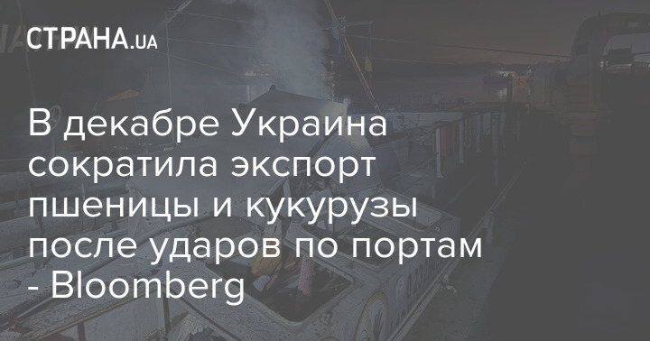 Снимок заголовка на bloomberg.com - После ударов по инфраструктуре Украина сократила экспорт пшеницы и кукурузы